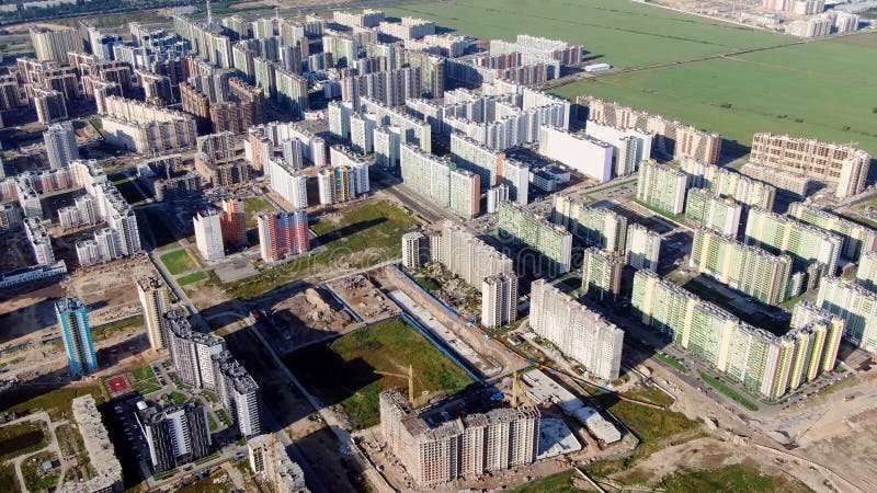 Top View Of Area Under Construction With Residential High-Rise. Motion. Large Area With Complex Colored High-Rise Stock Photo - Image Of Equipment, High: 168072862