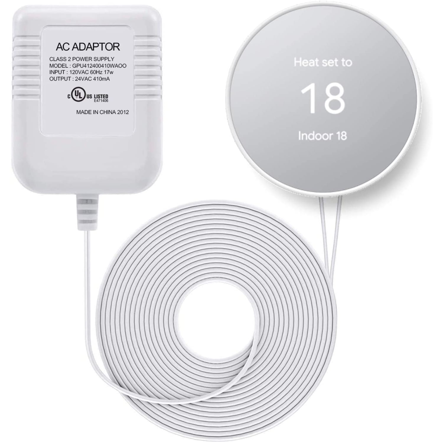 Wasserstein 24-Volt Transformer And C-Wire Adapter For Google Nest Thermostat, Learning Thermostat, Thermostat E And Wyze Thermostat 24Vadapter25Ftwhtusa