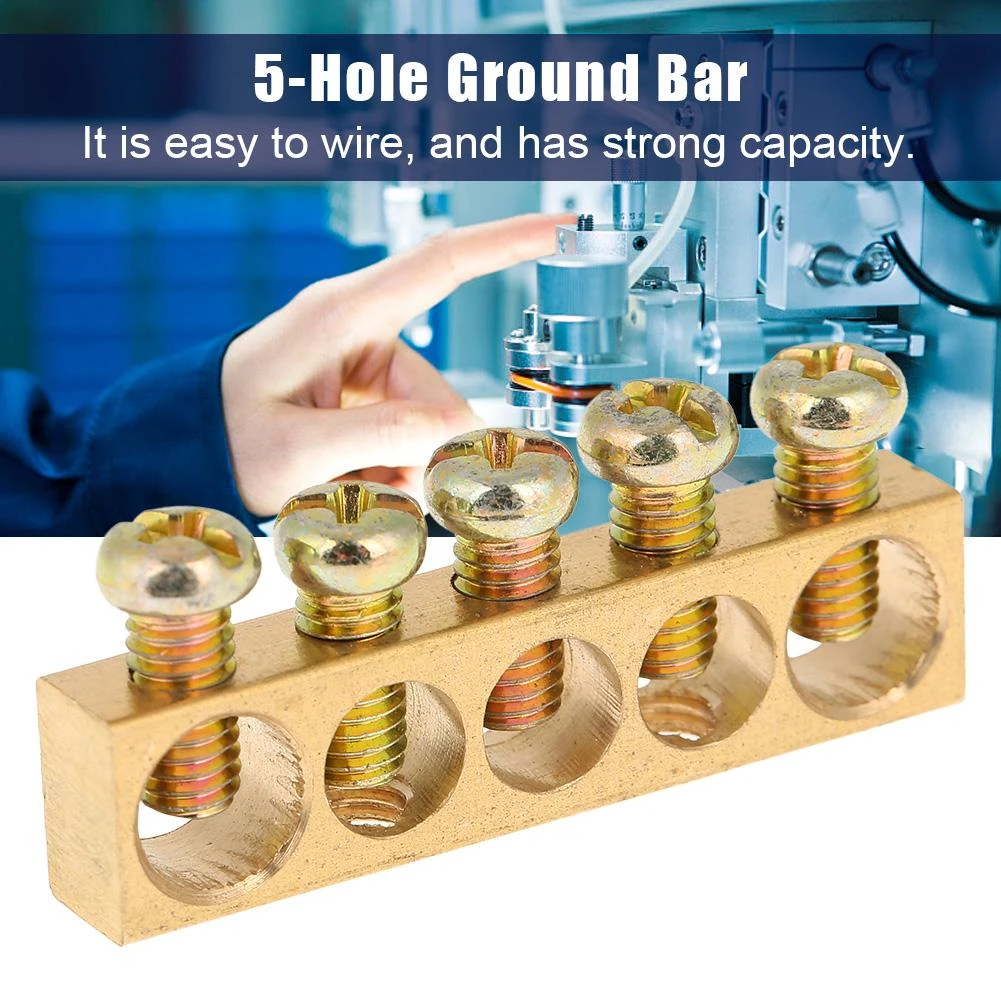 10 Pcs 5 Hole Terminal Block Connector Strip Electrical Distribution Wire Screw Terminal Brass Ground Neutral Bar Hot|Terminals| - Aliexpress